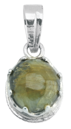 Natural Chrysoberyl Cat's Eye 11.82 ct with Silver Metal Pendent GSI # 72346770206 New York Lab Certified